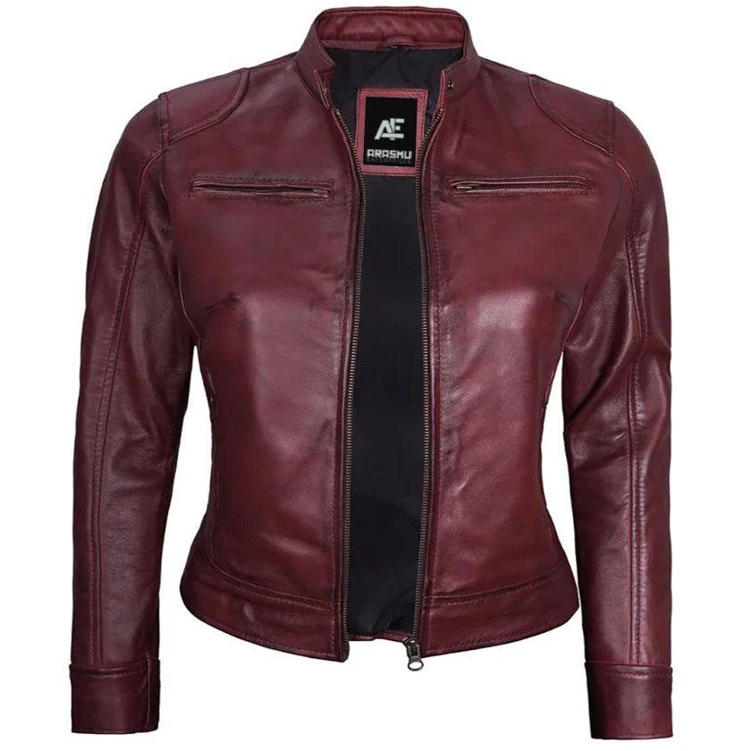 Maroon Leather Jacket For Women