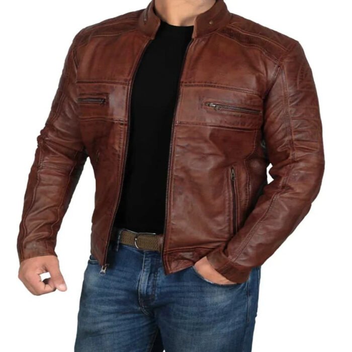 Men’s Cognac Cafe Racer Leather Jacket