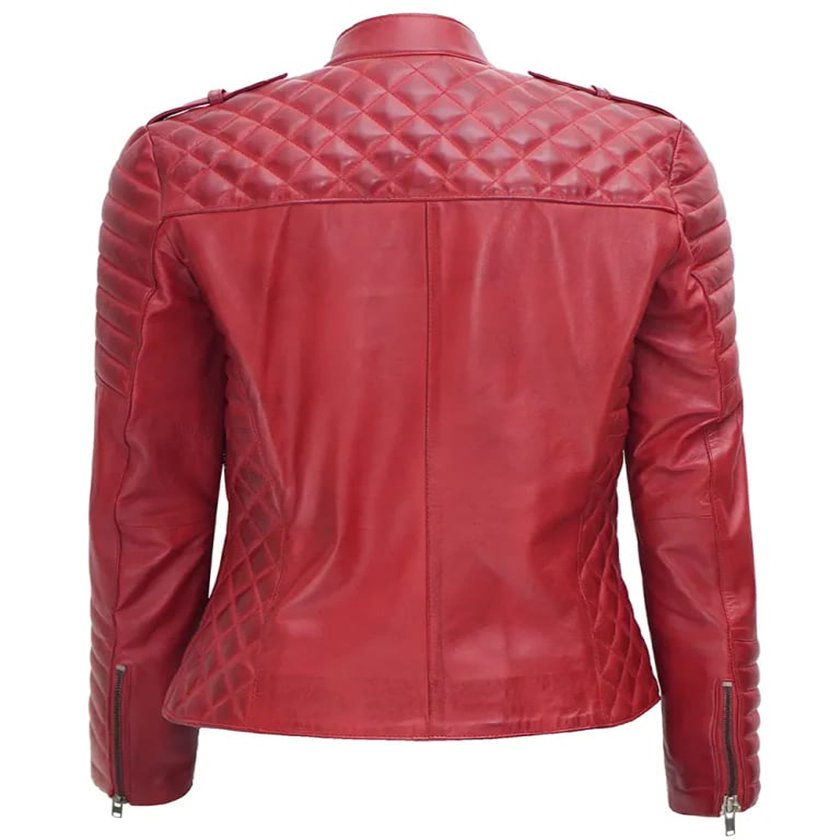 Elevate your style with our Women’s Red Motorcycle Leather Jacket, a fusion of edgy and chic design. Crafted from 100% real lambskin leather, this jacket combines rugged durability with sleek elegance. The vibrant red color adds a touch of daring to your outfit, while the thoughtfully placed zippers and pockets offer both utility and style. Whether you’re cruising on a bike or strolling through the city, this jacket is your ultimate fashion companion.