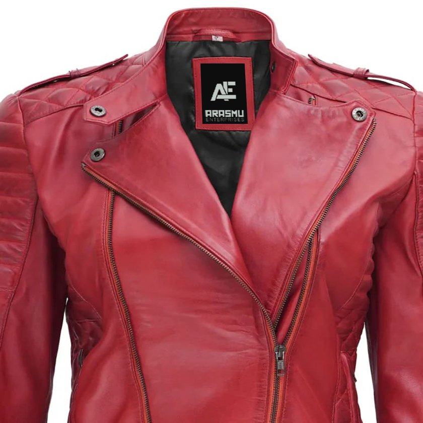 Women’s Motorcycle Red Leather Jacket